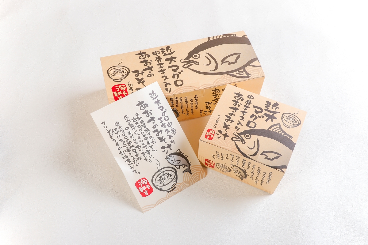 未利用資源であった近大マグロの中骨から圧力釜でじっくり丁寧に中骨だしを取りました。近大マグロの風味豊かなフリーズドライのお味噌汁です。