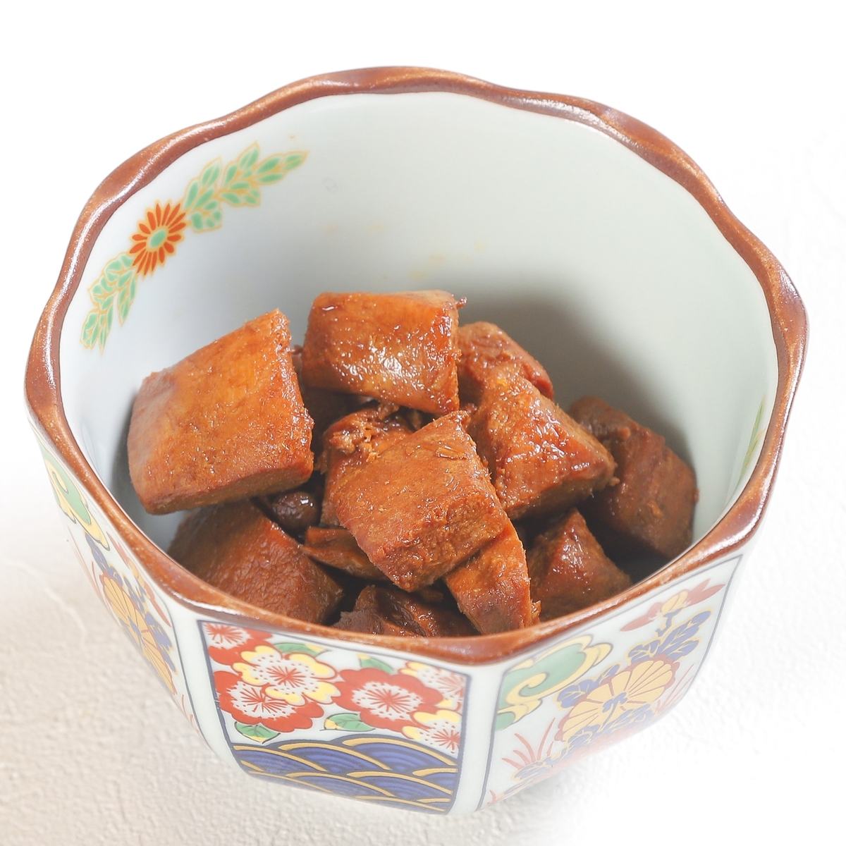 近大マグロ(和歌山県産、養殖)、砂糖、しょうゆ(大豆・小麦を含む)、食塩、赤ワイン、蛋白加水分解物(豚肉を含む)、生姜、山椒/アルコール、調味料(アミノ酸等)、カラメル色素、酸味料